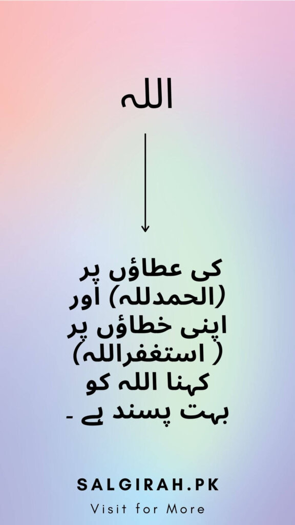 اللہ کی عطاؤں پر (الحمدللہ) اور اپنی خطاؤں پر ( استغفراللہ) کہنا اللہ کو بہت پسند ہے ۔